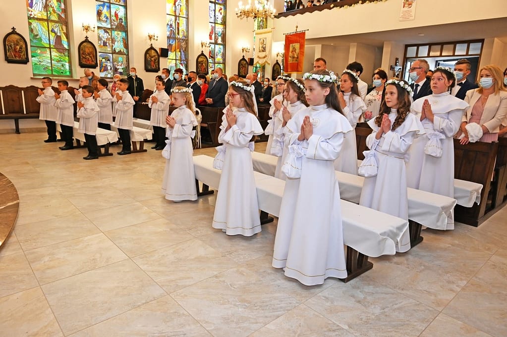 W tym roku dzieci z naszej parafii przyjęły Pana Jezusa do swego serca w niedziele 30 maja na Mszy św. o godz. 12.00. Uroczystościom przewodniczył ksiądz proboszcz Władysław Stachnio. Do ołtarza Pańskiego przystąpiło 12 uczniów z klasy III i 5 uczniów z klasy IV. Niech to wielkie wydarzenie wyryje niezatarte piętno w ich życiu, aby zawsze kochały Jezusa, jak najczęściej gościły Go w swoim sercu i były wierne Jego nauce.